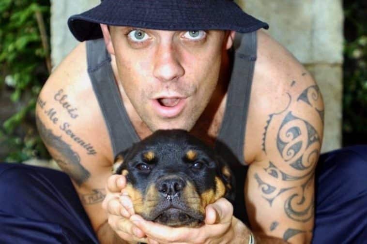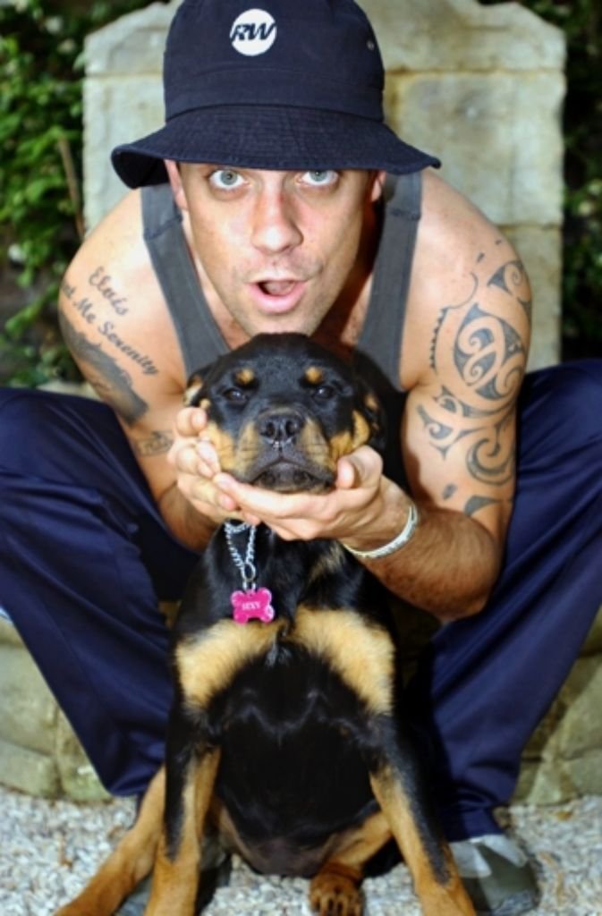 Robbie a adopté un Rottweiler de 14 semaines prénommé Missy (son collier porte l'inscription: 'sexy').