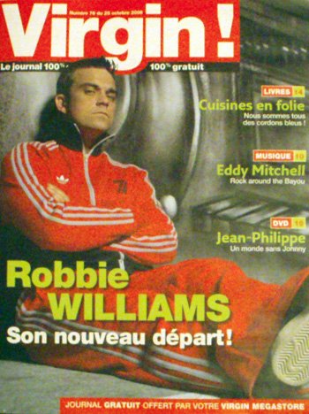 Robbie est en couverture du magazine français Virgin daté du 25 Octobre. Virgin est un magazine gratuit disponible dans tous les magasins Virgin Megastore.